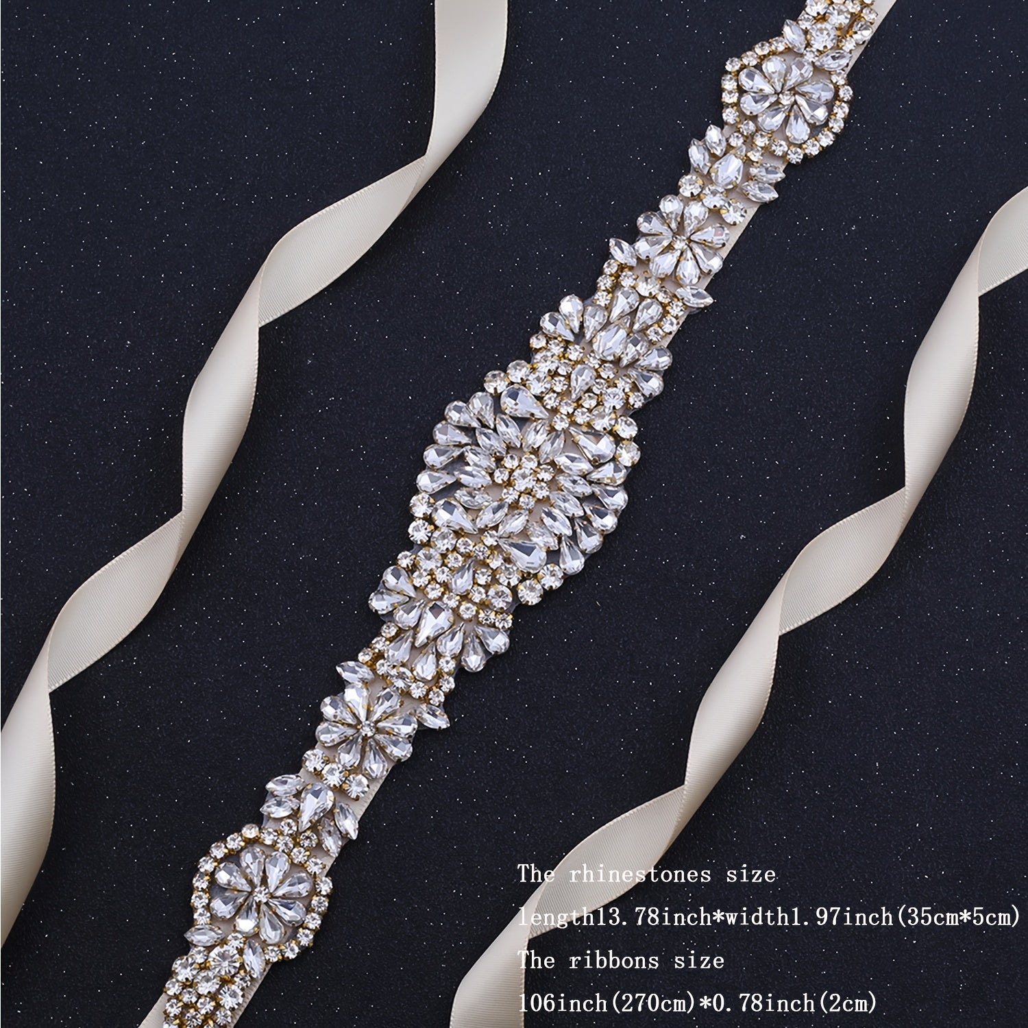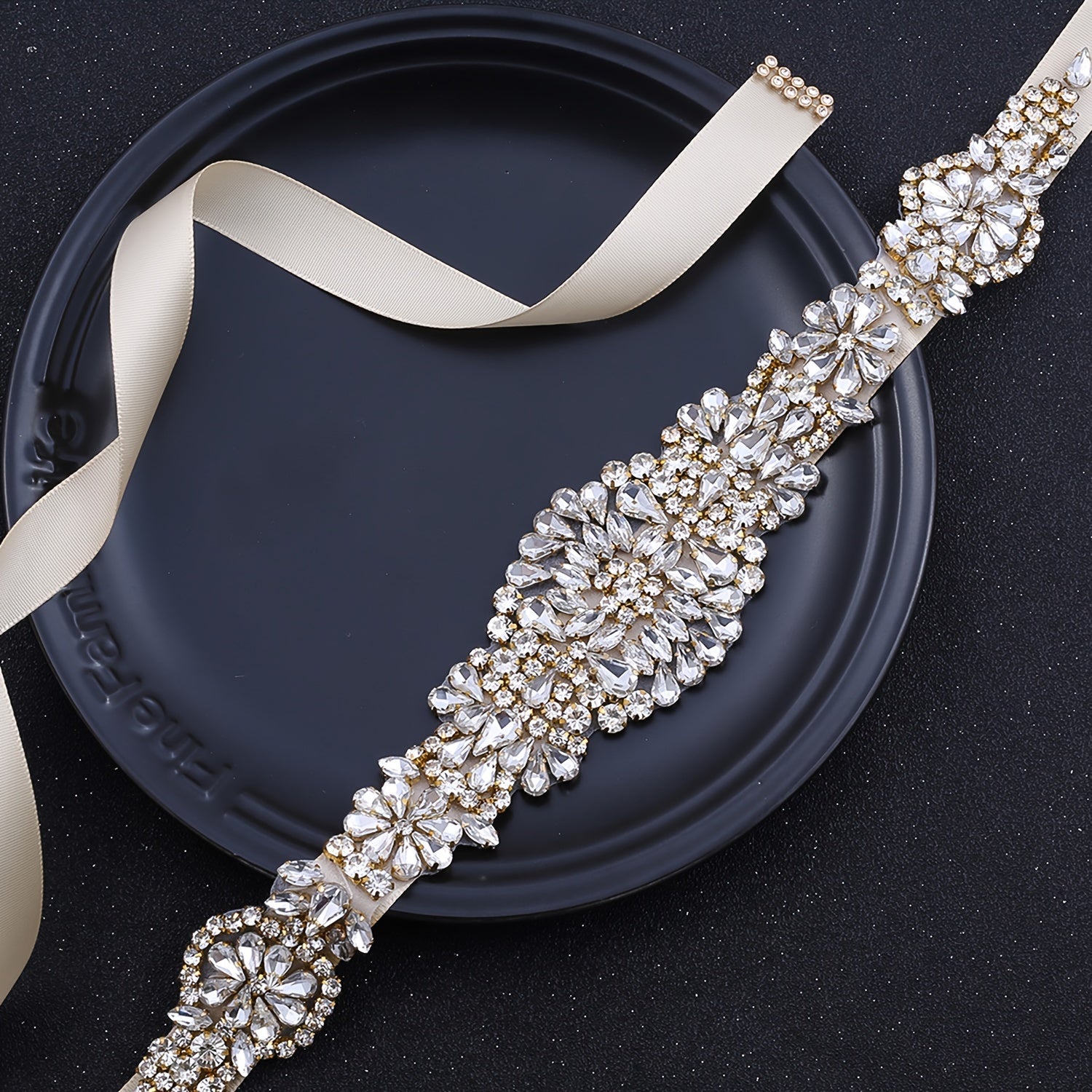 1PC Elegant Rhinestone Waistband Handmade Beaded Satin Ribbon Belt Waist Chain Bridal Wedding Dress Ball Gown Accessories