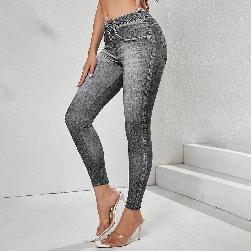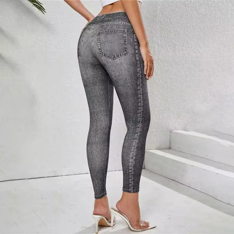 2025 Autumn Winter Denim Yoga Pants Women Vintage Casual Skinny Jeans Tights Woman Pocket High Waist Outdoor Joggers Trousers