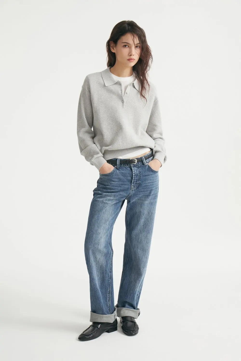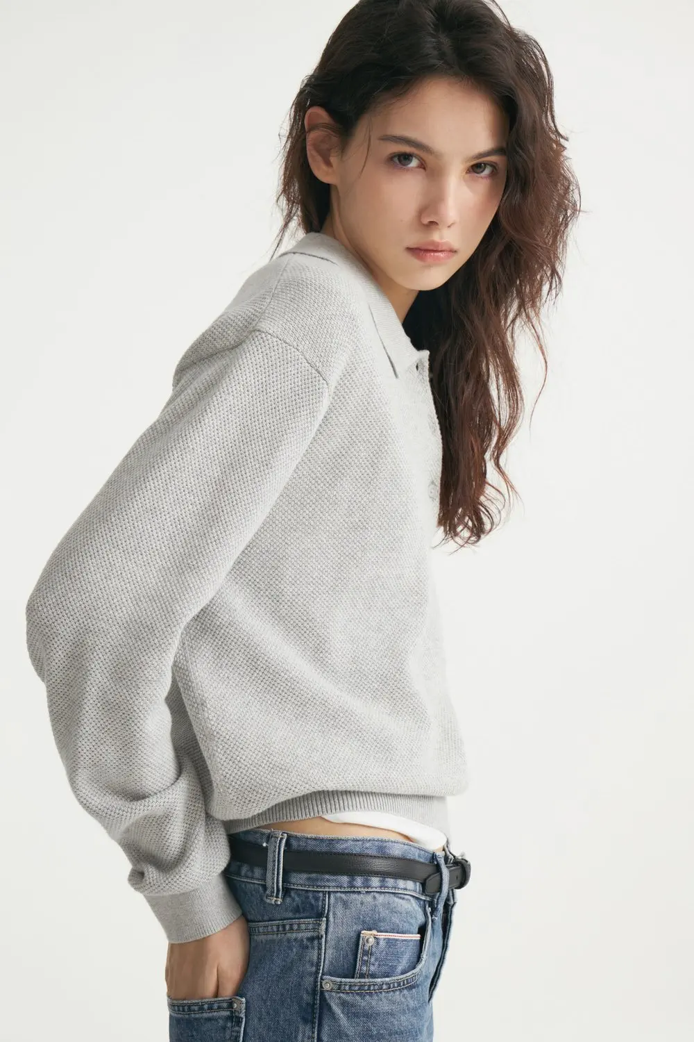 2025 Fall Polo's Shirts Long Sleeve Waffle Knit Tops For Women