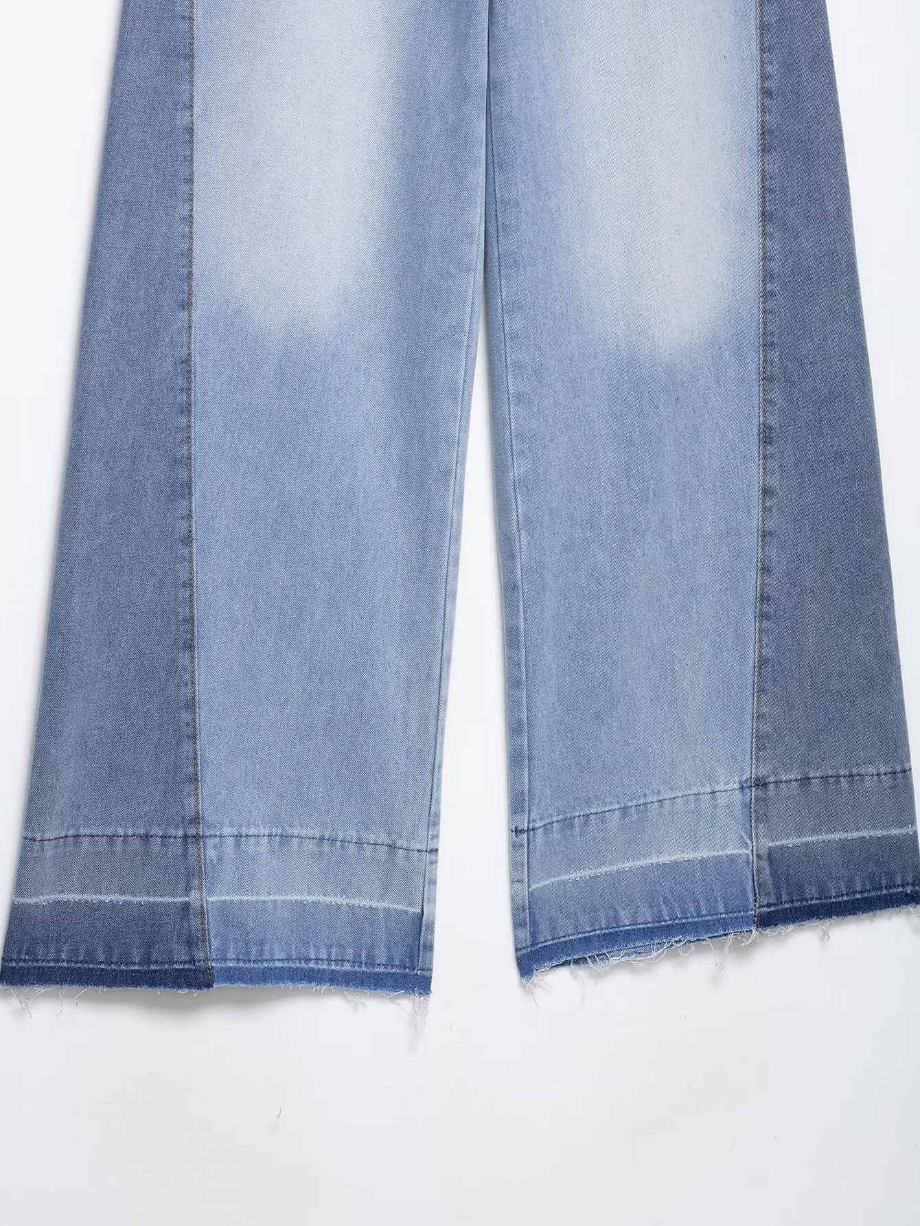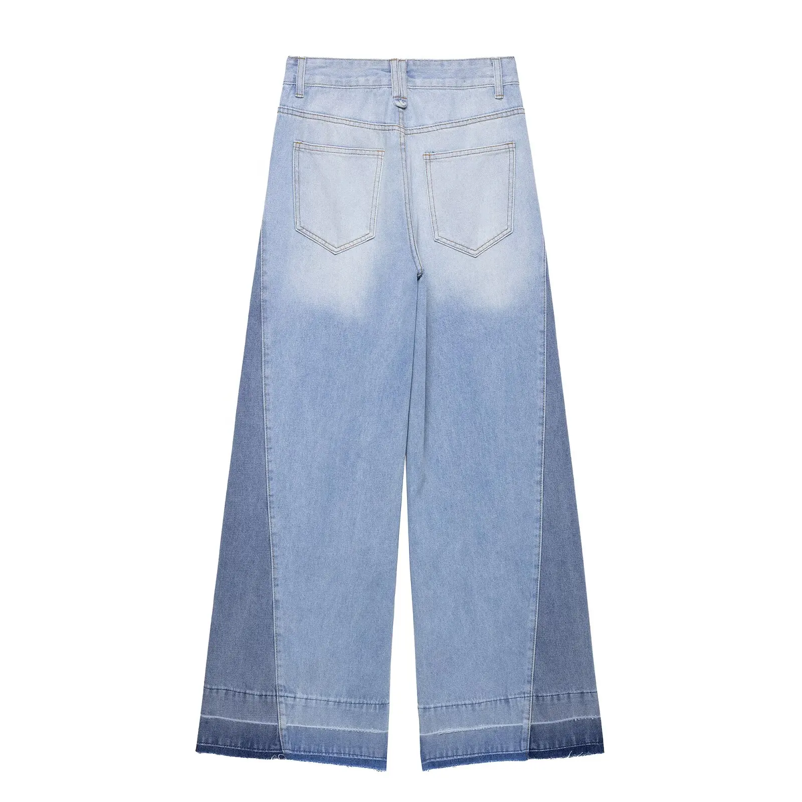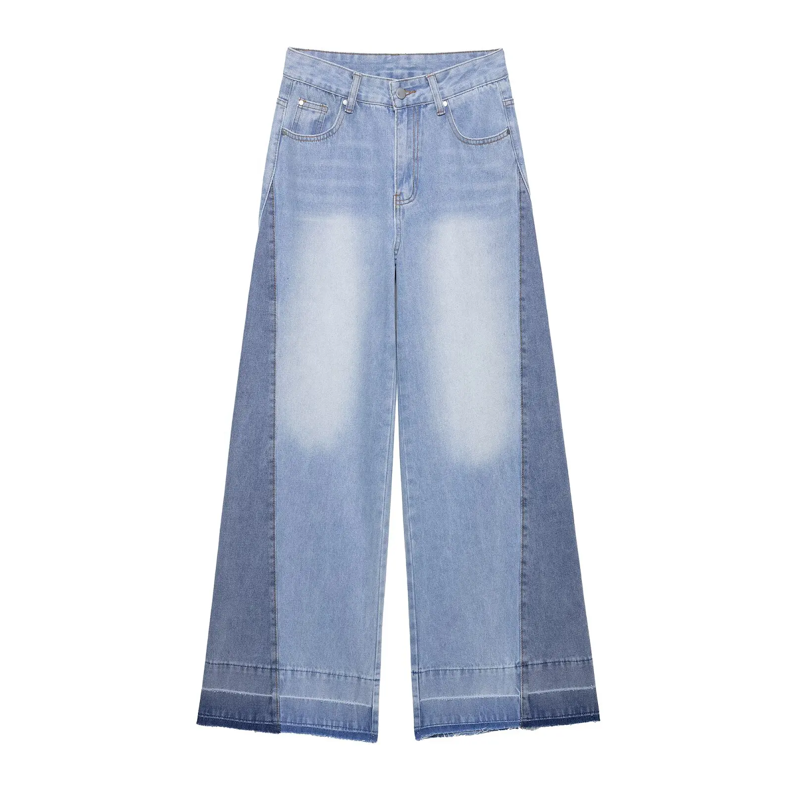 2025 new summer women's casual fashion simple design comfortable stitching high waist wide leg jeans