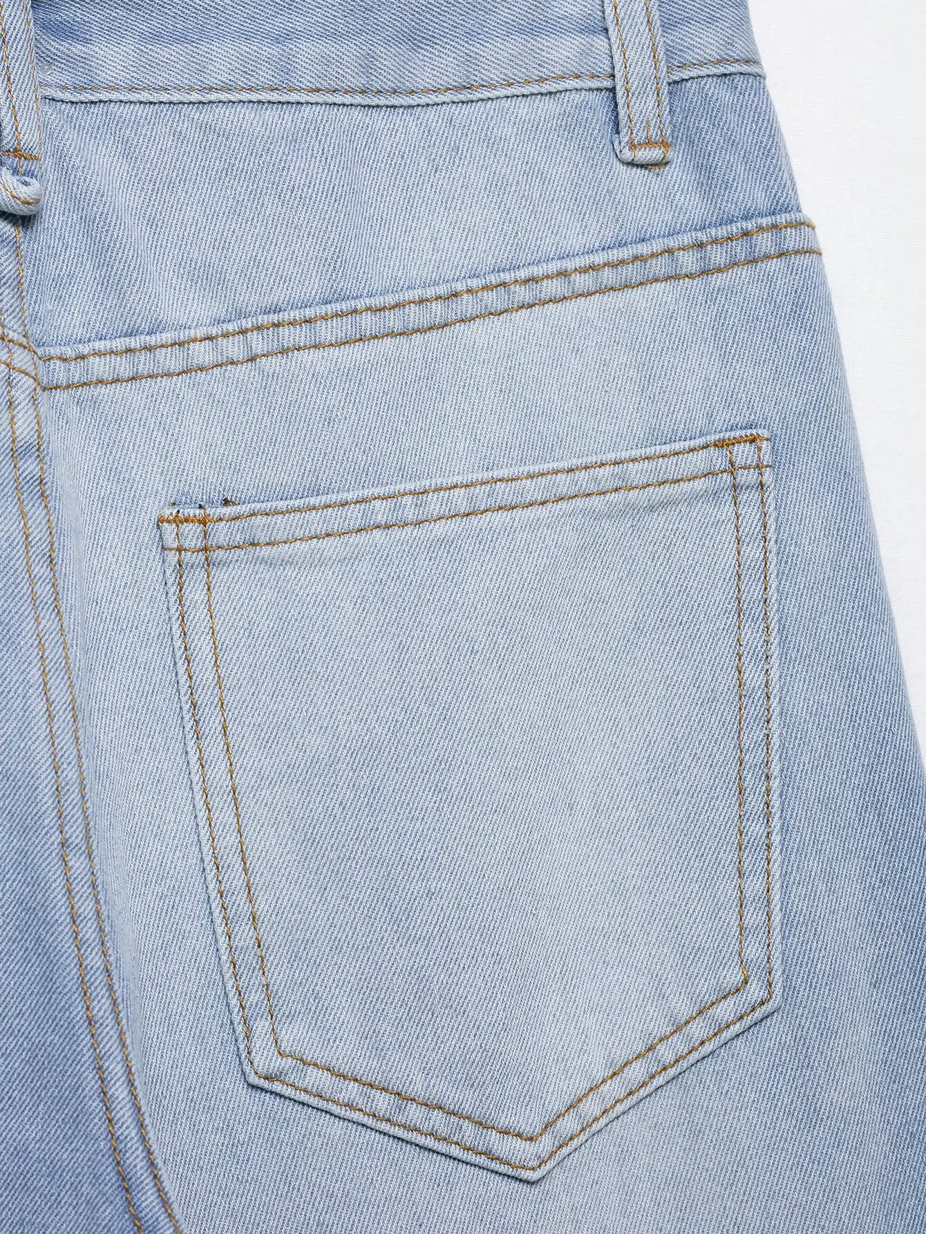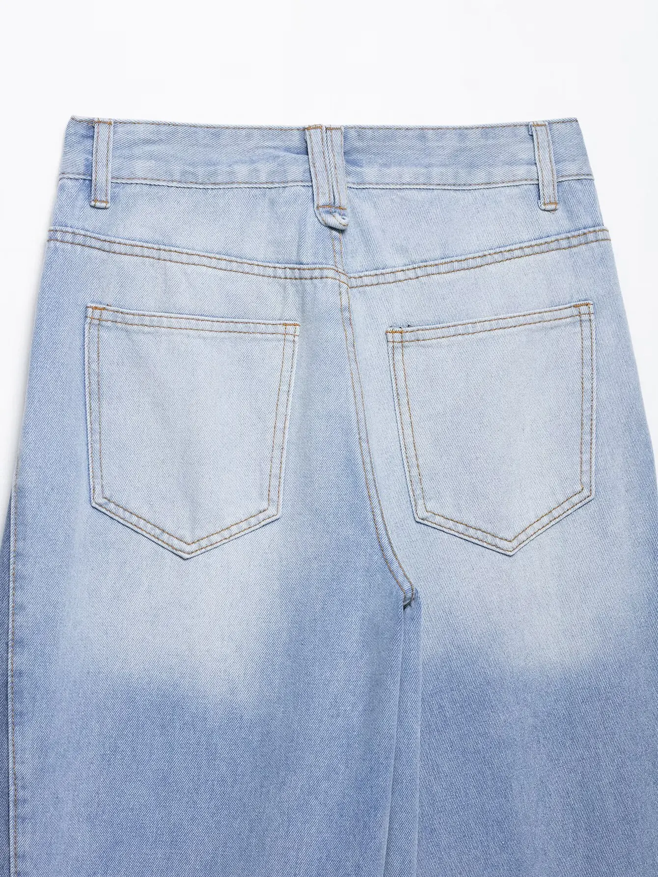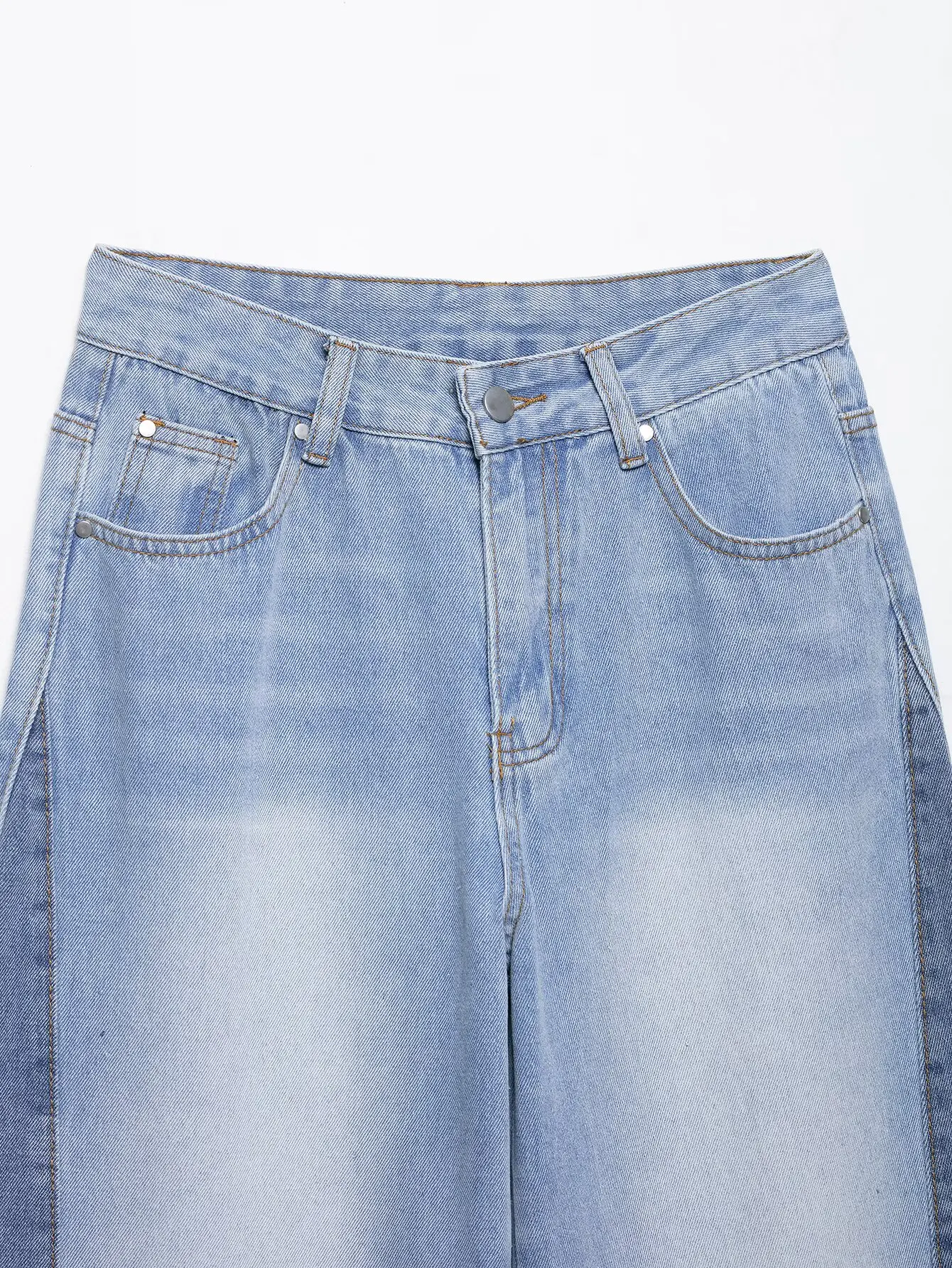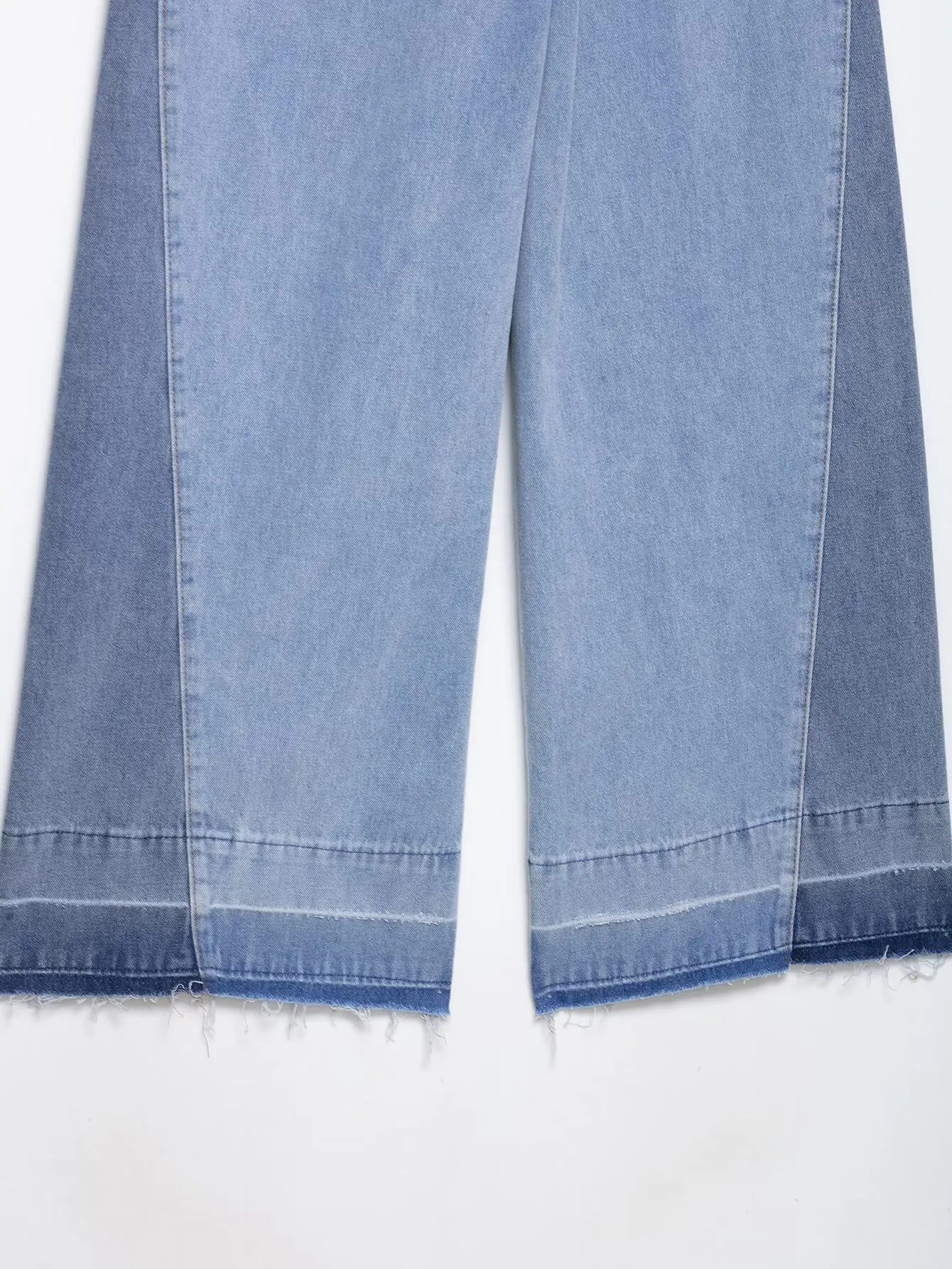 2025 new summer women's casual fashion simple design comfortable stitching high waist wide leg jeans