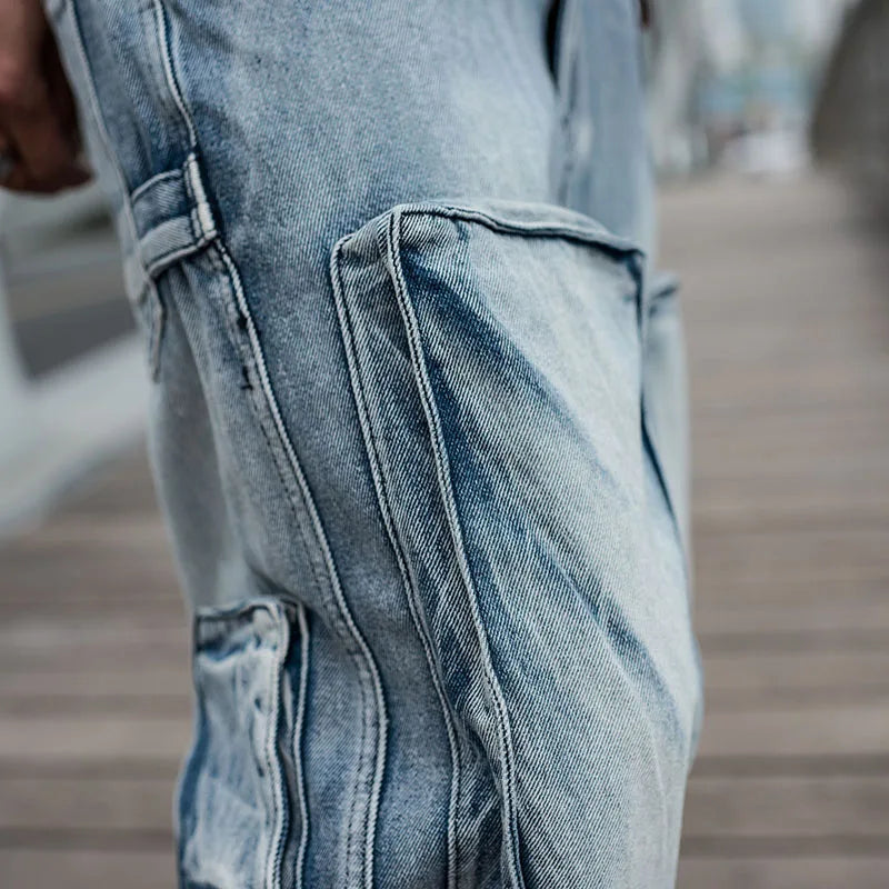 Baggy Jeans Mens Straight Denim Cargo Pants Biker Jeans Men Baggy Loose Blue Jeans With Side Pockets Jeans Men