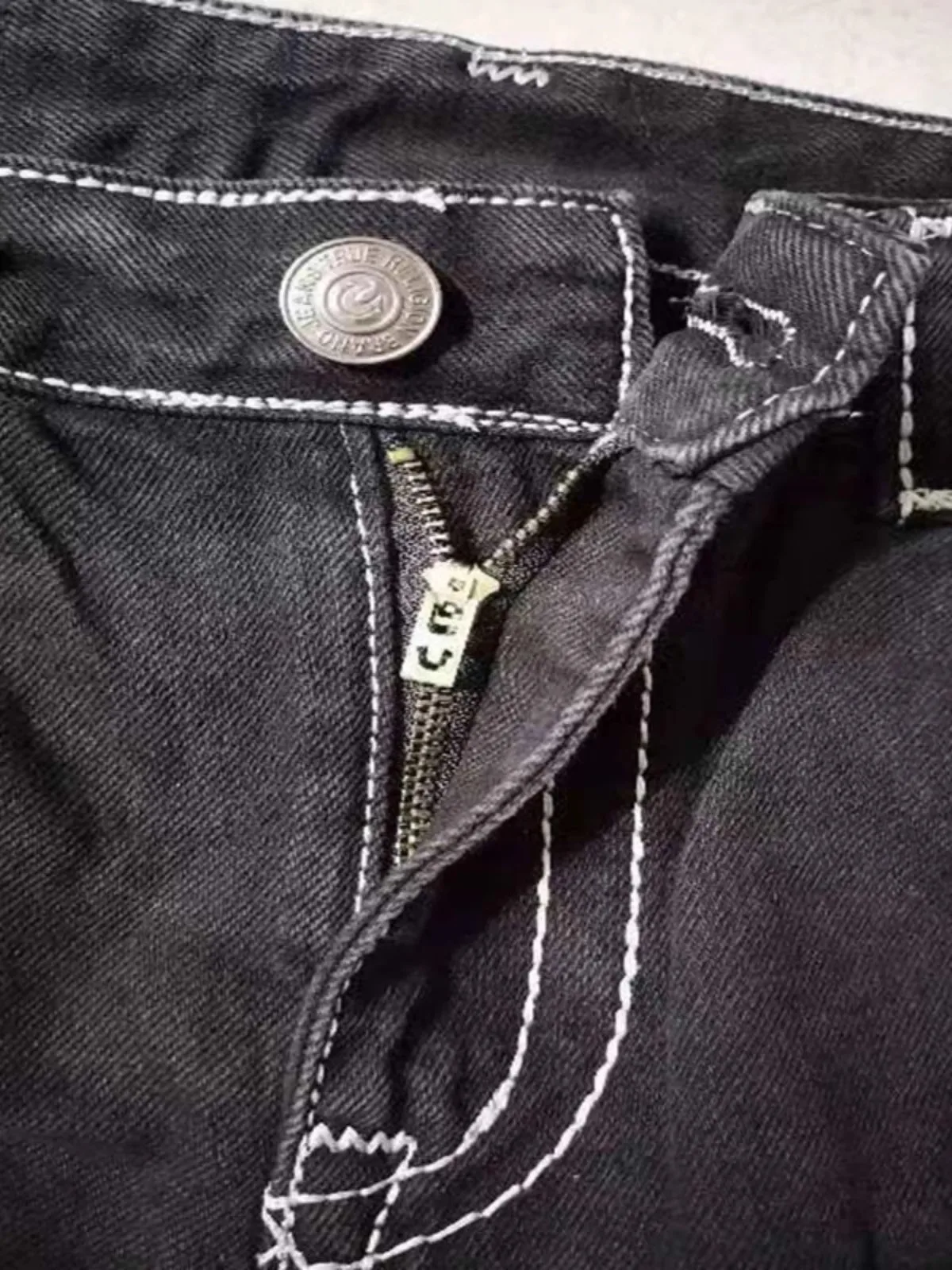 Buddha Jeans Vintage Y2K Men's Jeans Women's Pocket Embroidered Jeans Patch Leather Vintage Blue Jeans Loose Fit Jeans pants