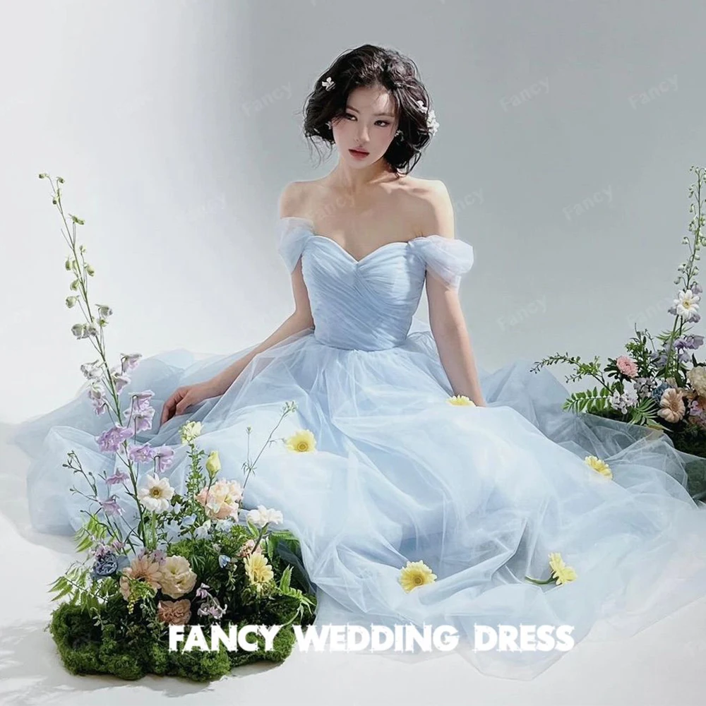 Fancy Fairy Light Blue Off Shoulder Wedding Dress Korea Photo Shoot A Line Soft Tulle Bridal Gown Back Corset 웨딩드레스 customized