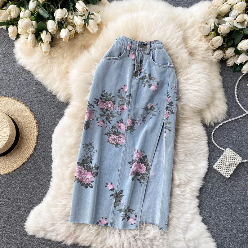 Flowers Print Jeans Women Vintage High Waist Denim Long Pants 2025 Fashion Autumn Casual Wide Leg Full Length Denim Trousers