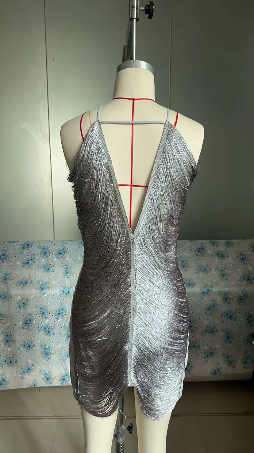 Model Number: Fringe V-neck Mini Dress Halterneck Vestidos