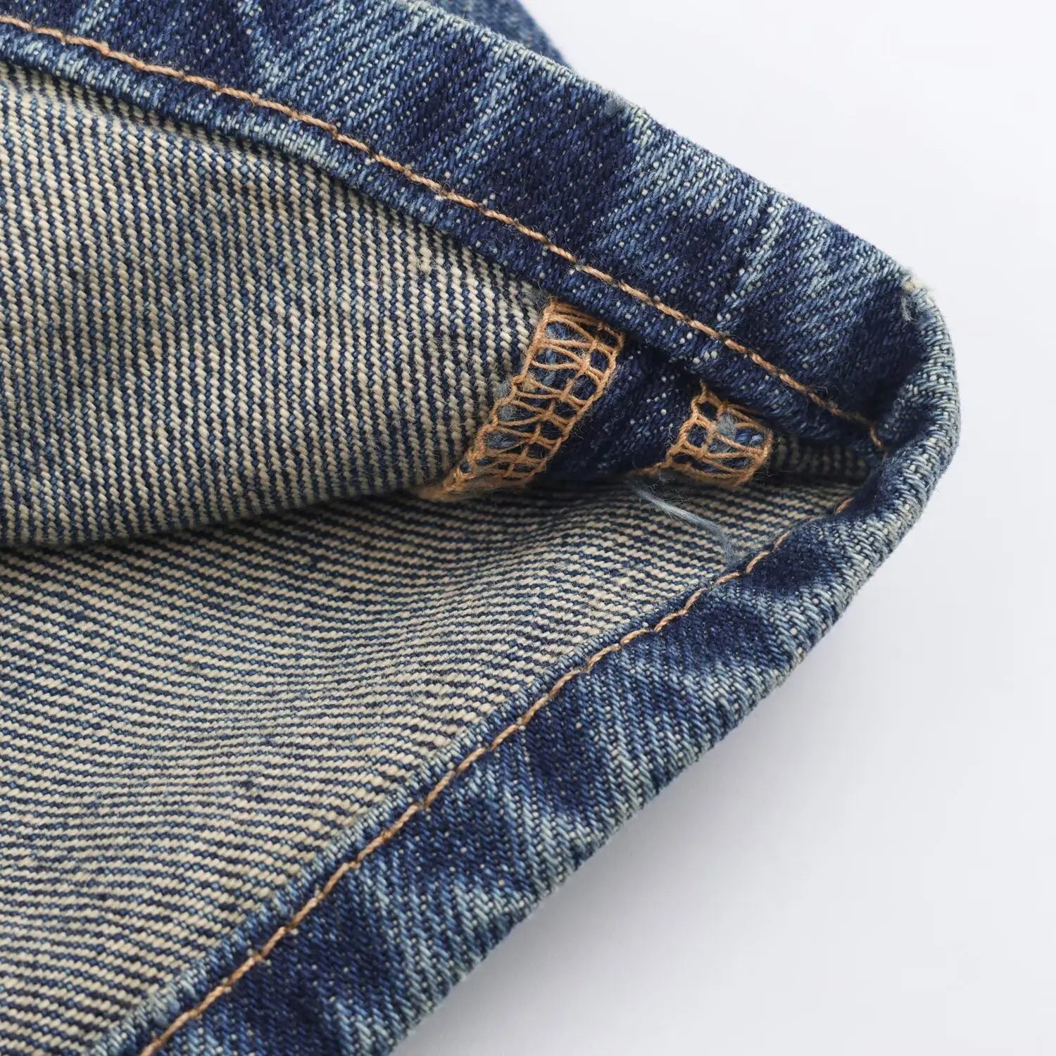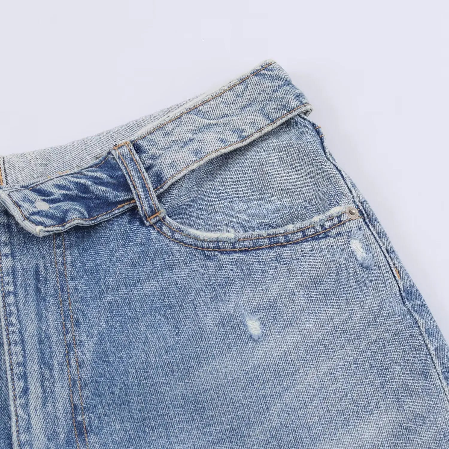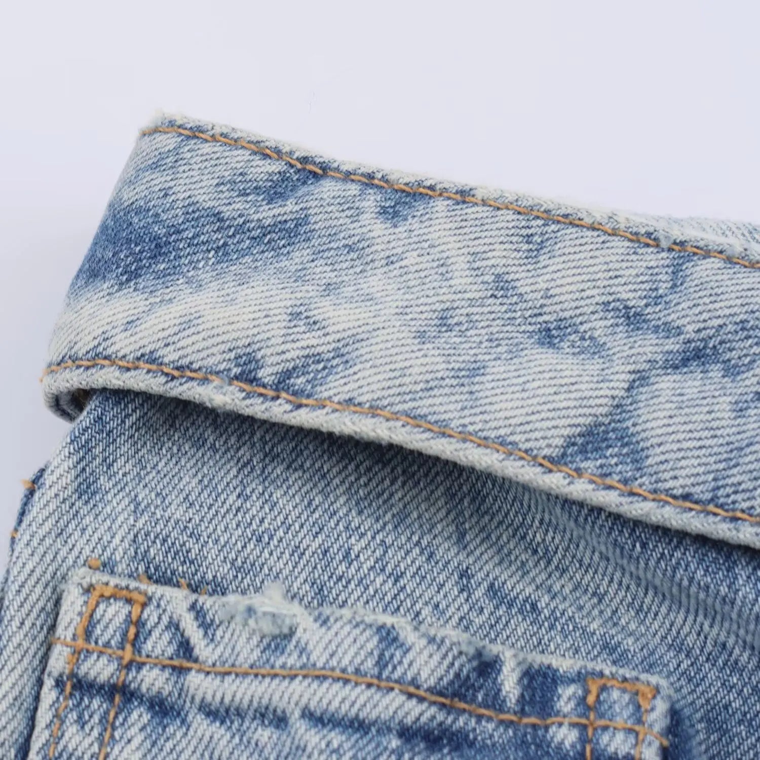 HH Women's 2025 New Fashion Retro Versatile Mid-Waist Turn-Down Jeans Female High Street Casual Ripped Decorative Wide Leg Pants