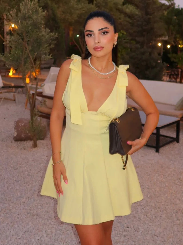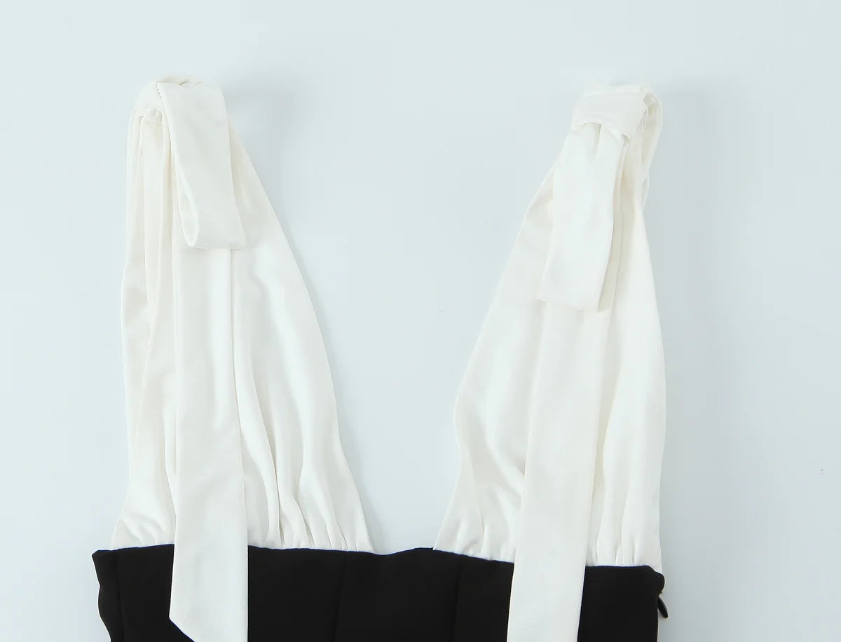 HH Women's New Fashion Mini Dress White Black V-Neck Backless Zipper Decorate Female Summer Sexy Chic Sleeveless Dresses
