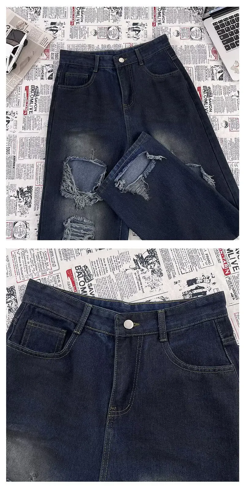 High Street Trendy Ripped Wide Leg Jeans for Women in Spring and Summer New High Waist Loose Fashion Floor Pants y2k Jeans Woman
