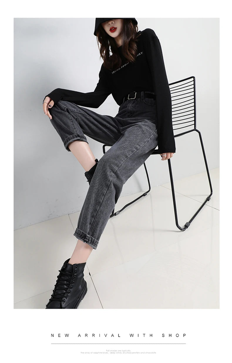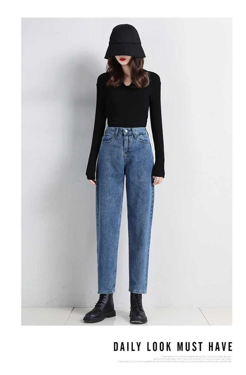 High Waist Jeans Women Classic Vintage Blue Gray Mom Jeans Straight Denim Trousers Womens Casual BF Harem Pants Jeans Femme