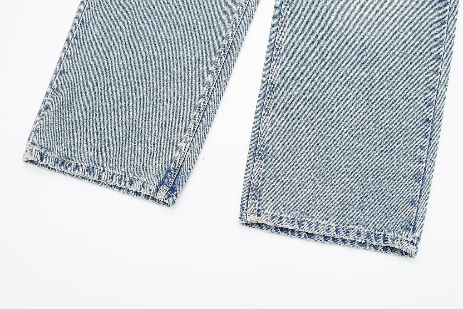 Jeans For Women 2024 Denim Solid Loose Zipper Fly Female Hole Trouser Pockets Wild Basic Commute Woman Wide Leg Long Pant