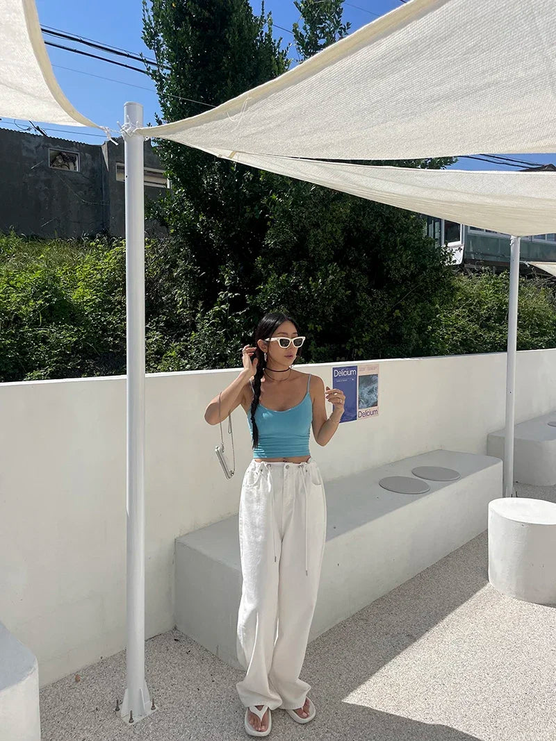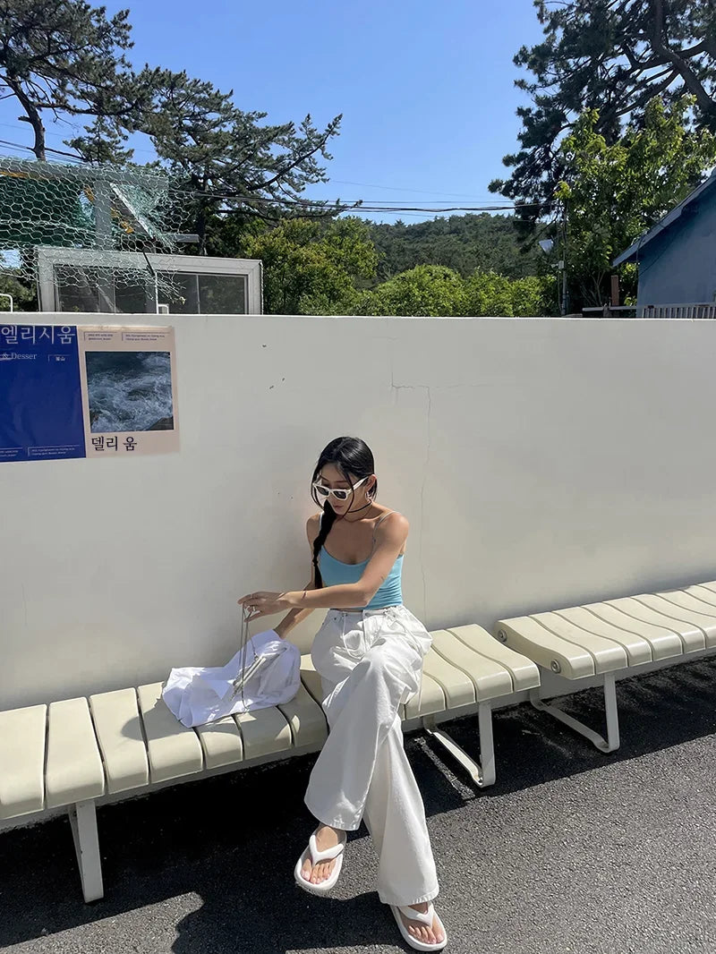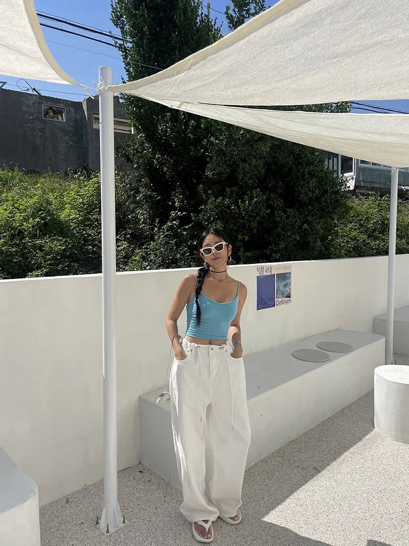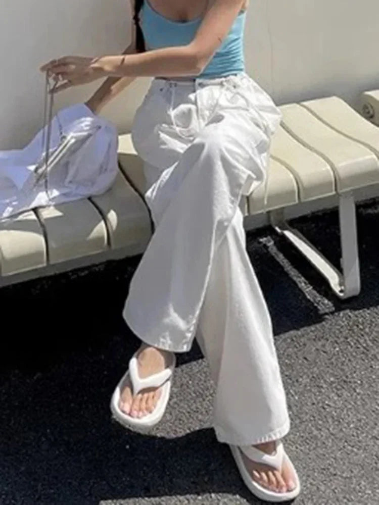 Korean Ins Retro Versatile High Waist Women's Straight Leg Jeans Summer New Fashion Loose Drawstring Design Women Wide Leg Jeans
