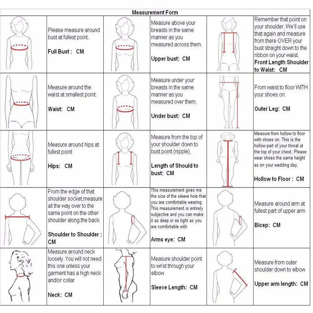 Custom Made Size Please Choose any Size and Leave a Message of Your Following Measurements :