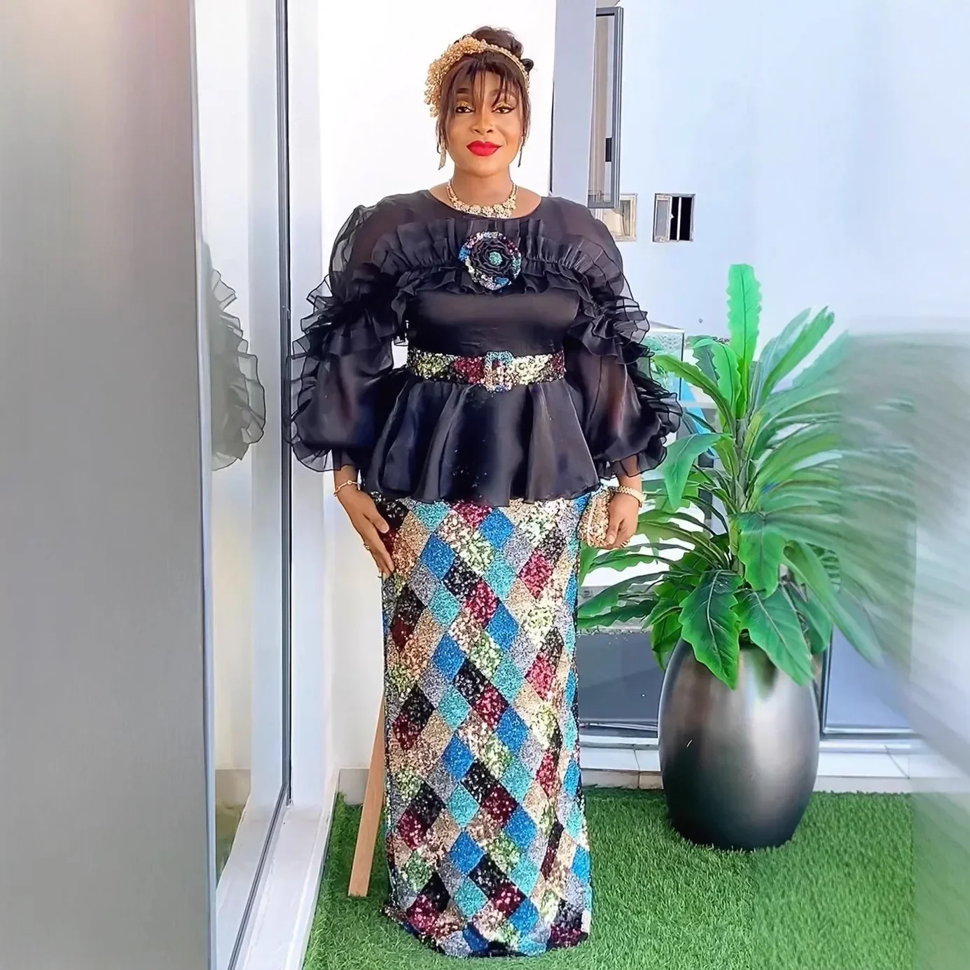 Plus Size Evening Dresses for Women African Luxury Sequin Gown Elegant Turkey Wedding Party Long Dress Ankara Ladies Clothing