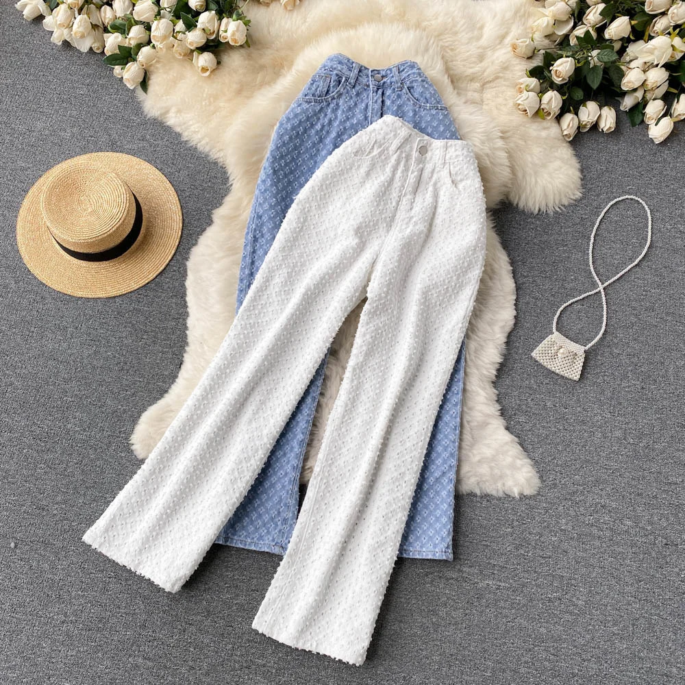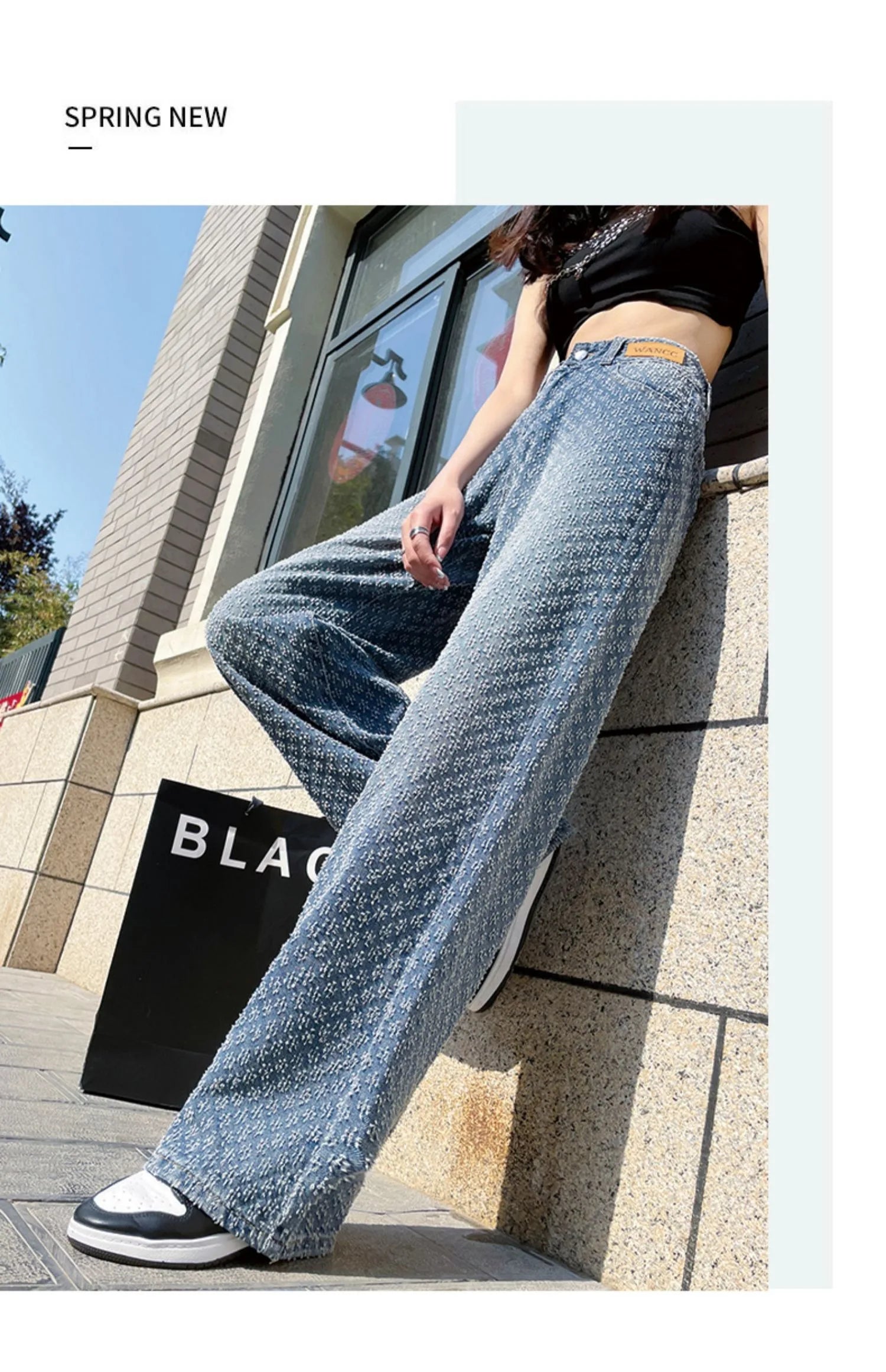 Ripped Jeans for Women Casual Streetwear New Spring Autumn High Waist Straight Leg Pants Fashion White Blue Denim Trousers