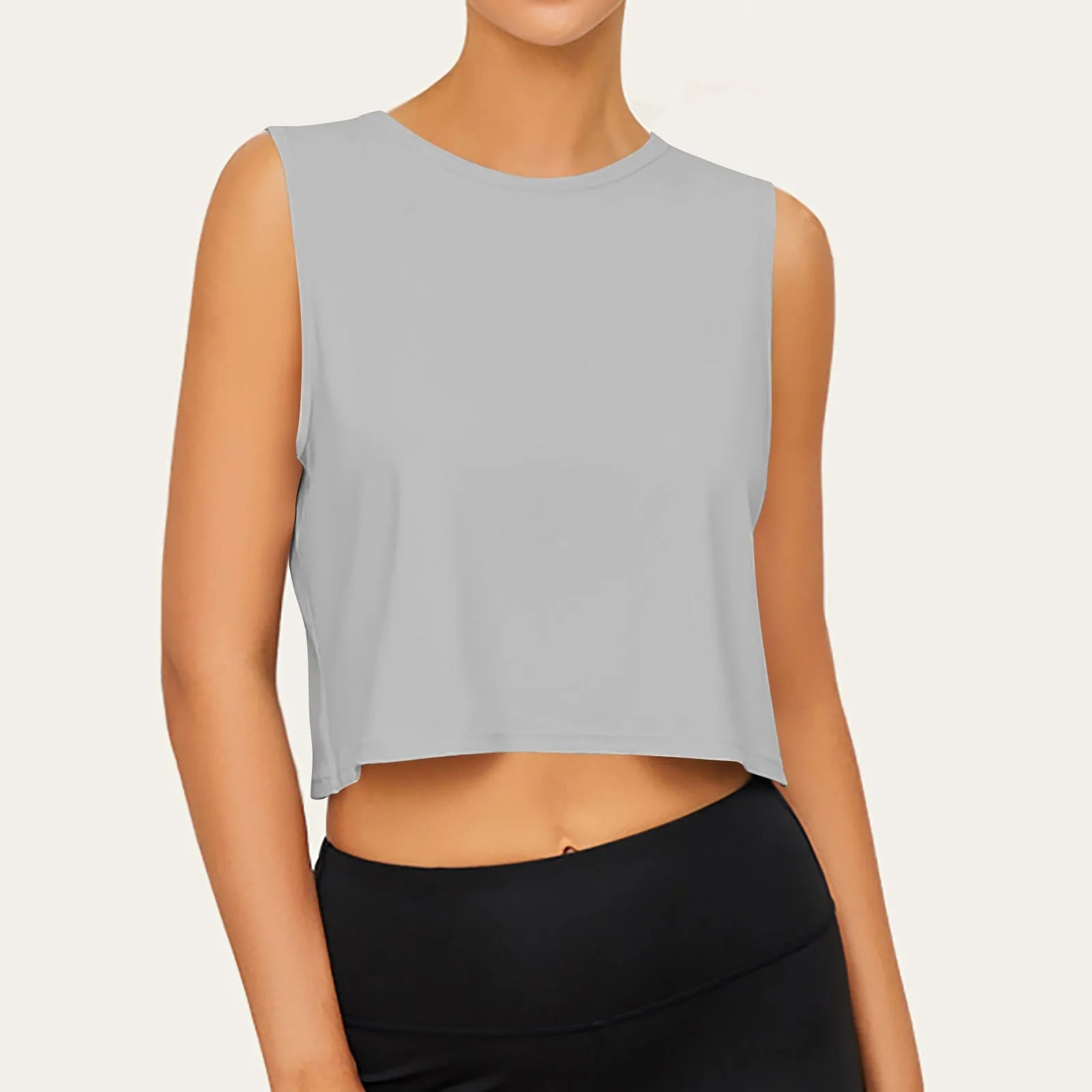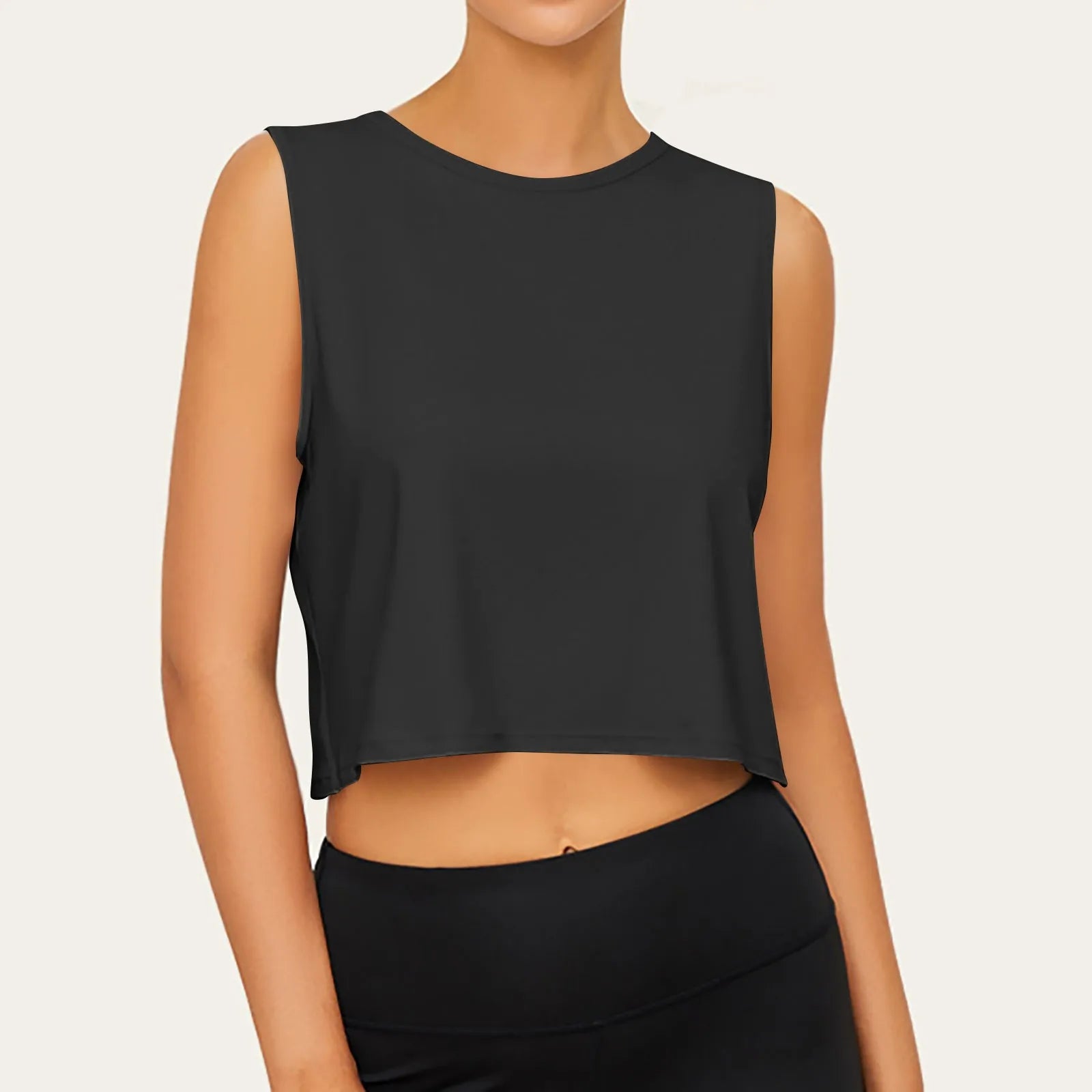 Women Sleeveless Yoga Tops Workout Cool T-Shirt Running Short Tank Crop Tops