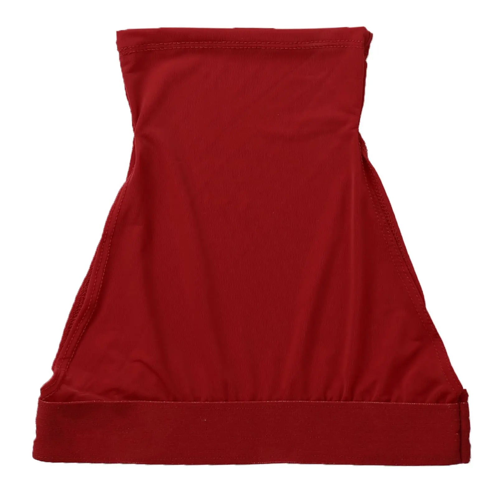 High neck and sleeveless, elastic underbust provides a good support and prevents rolling up, pull on closure.