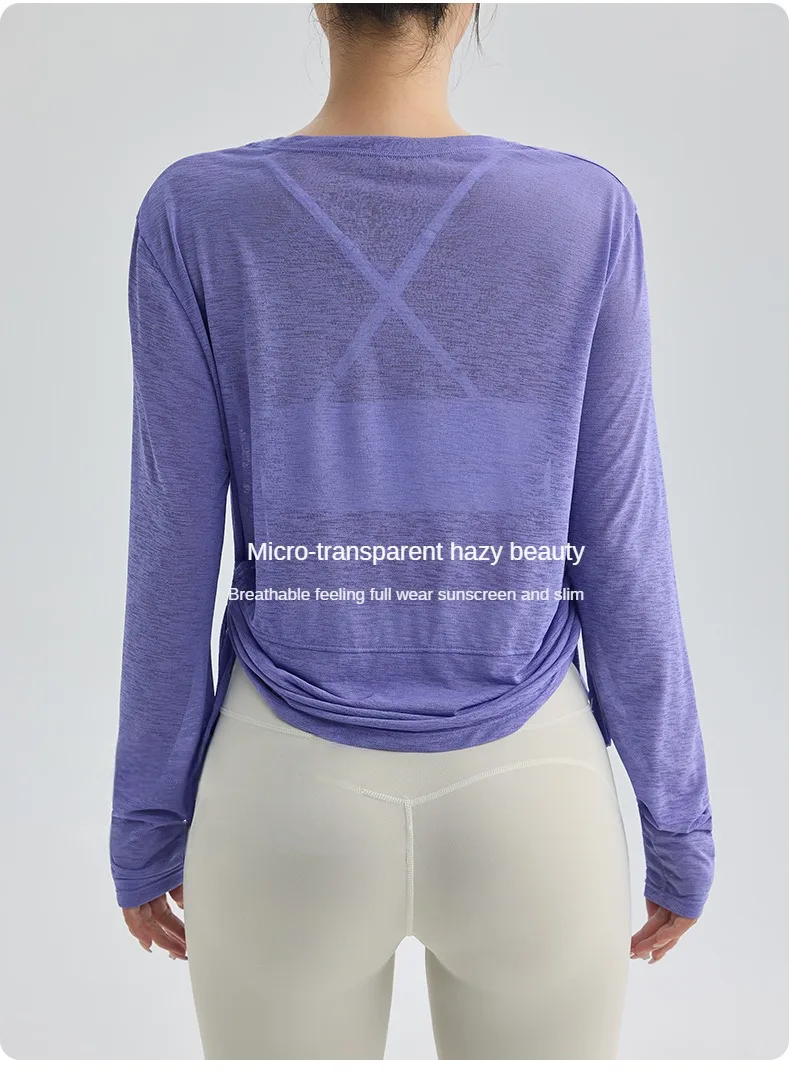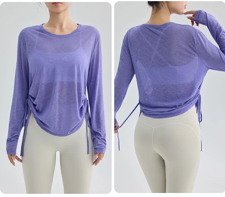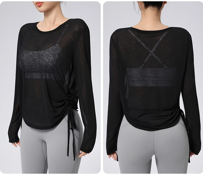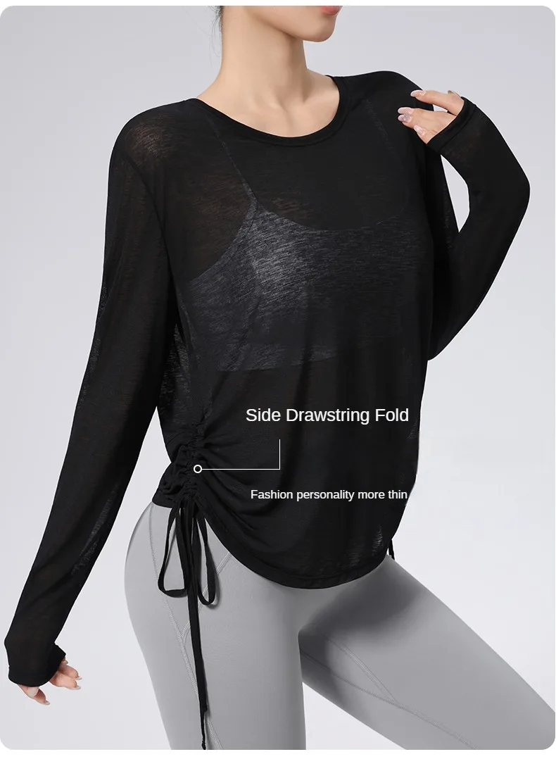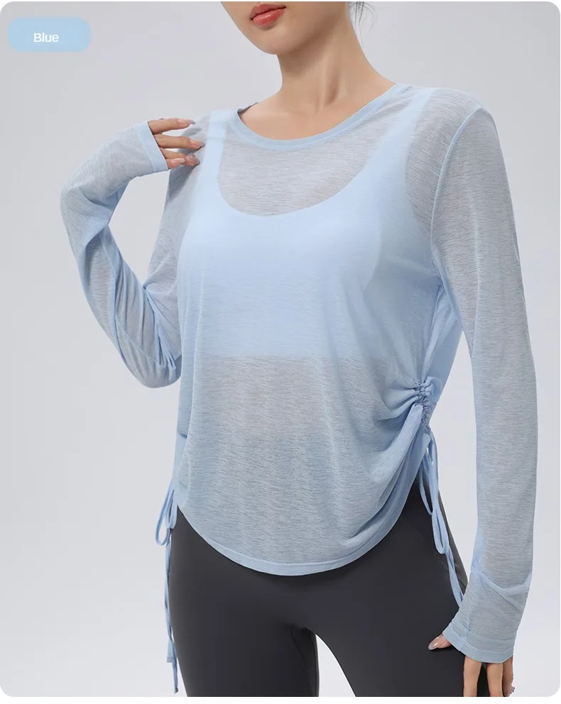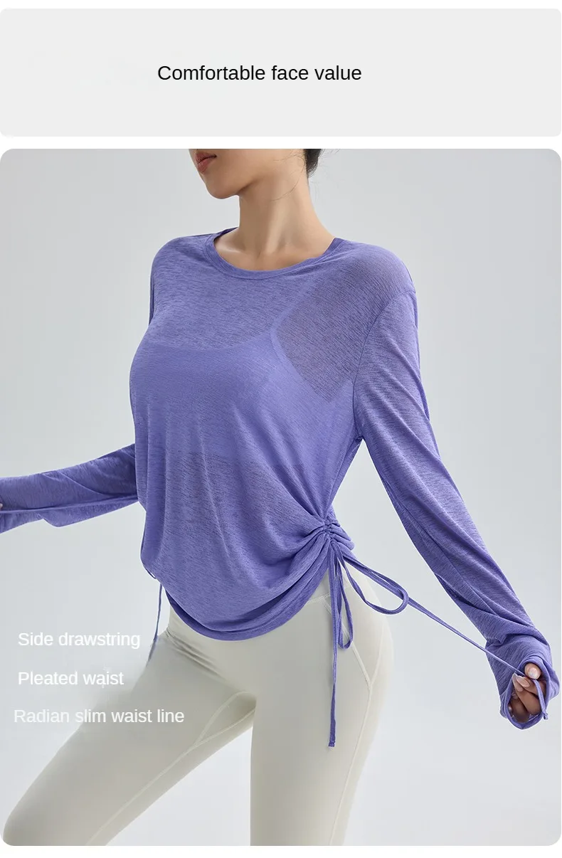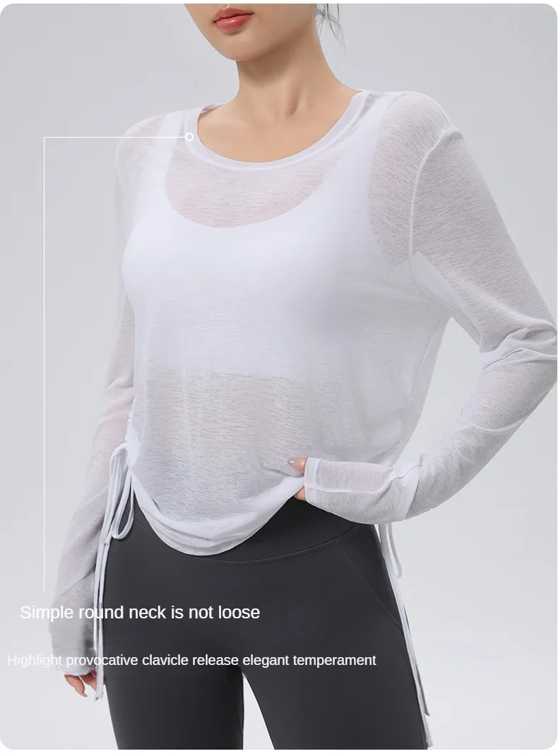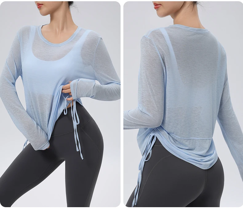 Thin Sunscreen Clothes Yoga Loose Top Drawstring Long Sleeve T-shirt Women's Gym Outdoor Exercise Clothing