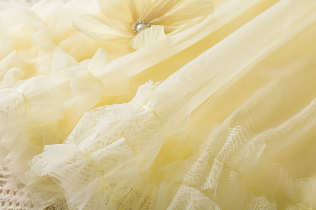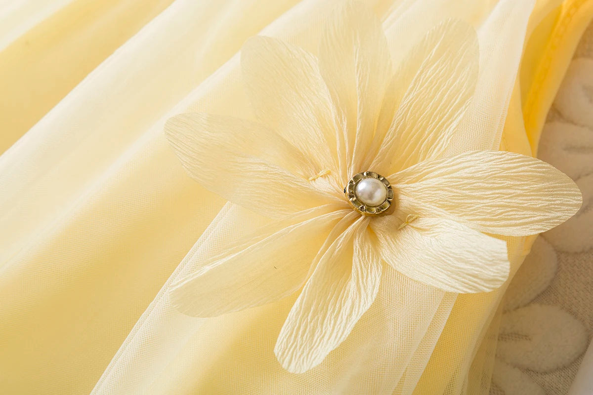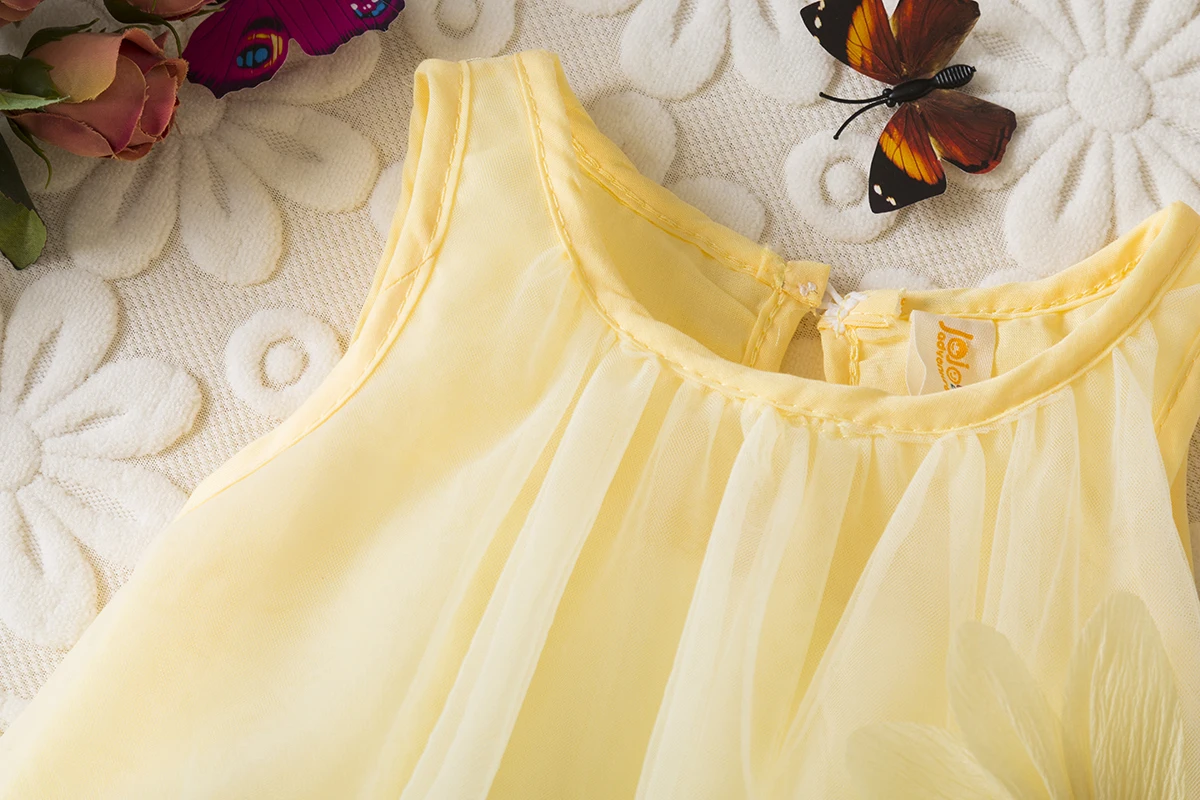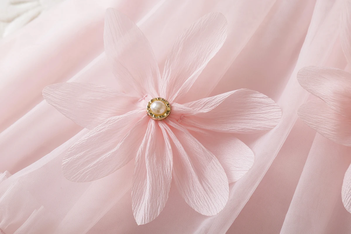 Toddler Girl Princess Dress Pink Flower Decorated Sleeveless Gauze Dress Elegant Girl Wedding Party Dress for Party