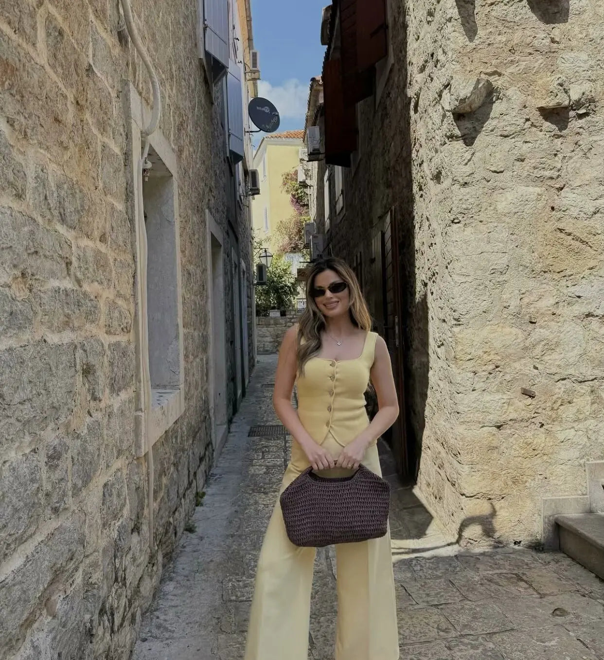 Tops Women's 2025 New Summer Knit Tops Fashion Elastic Slim Knit Elegant Holiday Young Women Tops Street Chic Student Camis Tops