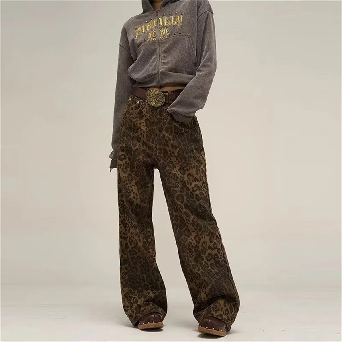 Vintage Leopard Jeans Women Denim Pants Female Spring Oversize Casual Wide Leg Trousers Streetwear Hip Hop Clothes Loose Y2K