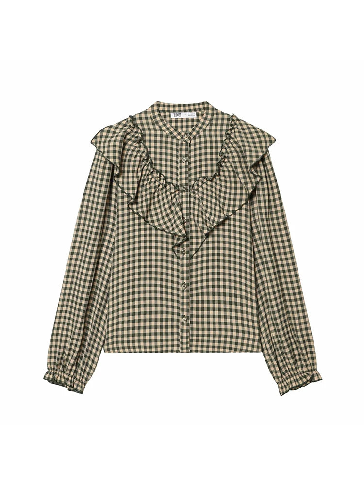 Women Blouses Tops Spring New Fashion Plaid Layered Elegant Women's Shirts Tops Chic Street Single-breasted Tops