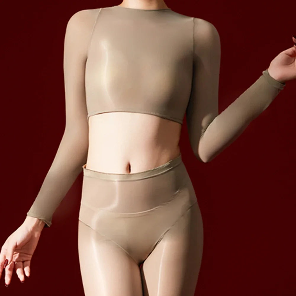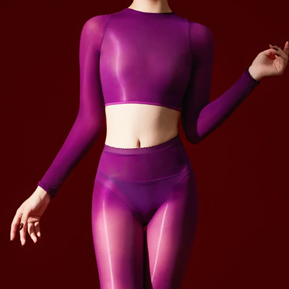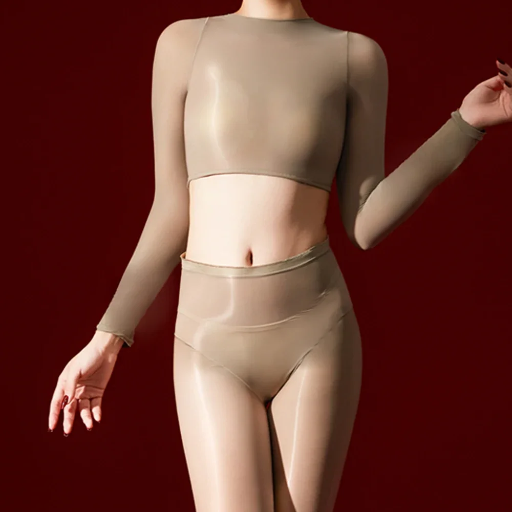 Women's 5D Ultrathin Crop Tops Elastic Shaping Oil Shiny Sheer See Through T-shirts Woman Clothing Summer Shirts Yoga Tops