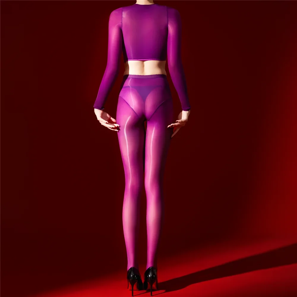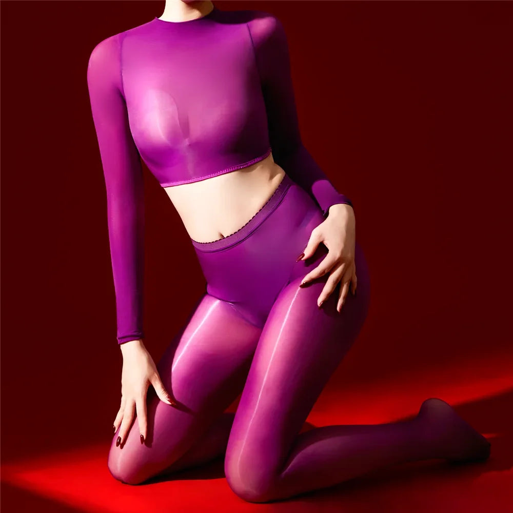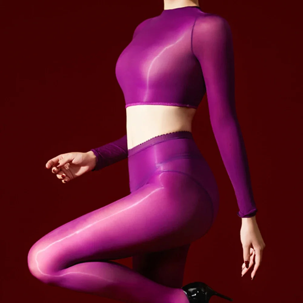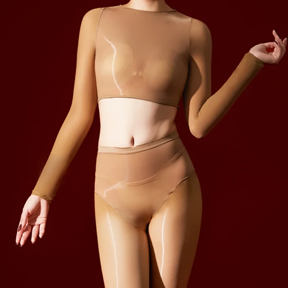 Women's 5D Ultrathin Crop Tops Elastic Shaping Oil Shiny Sheer See Through T-shirts Woman Clothing Summer Shirts Yoga Tops