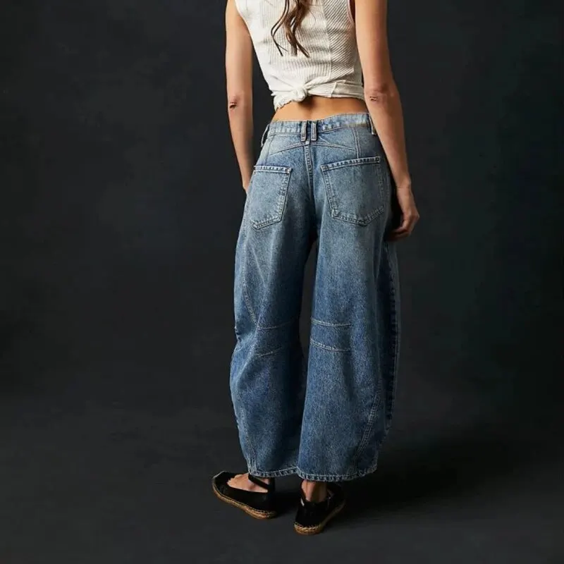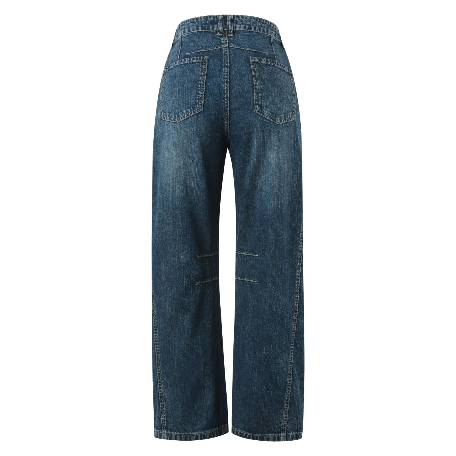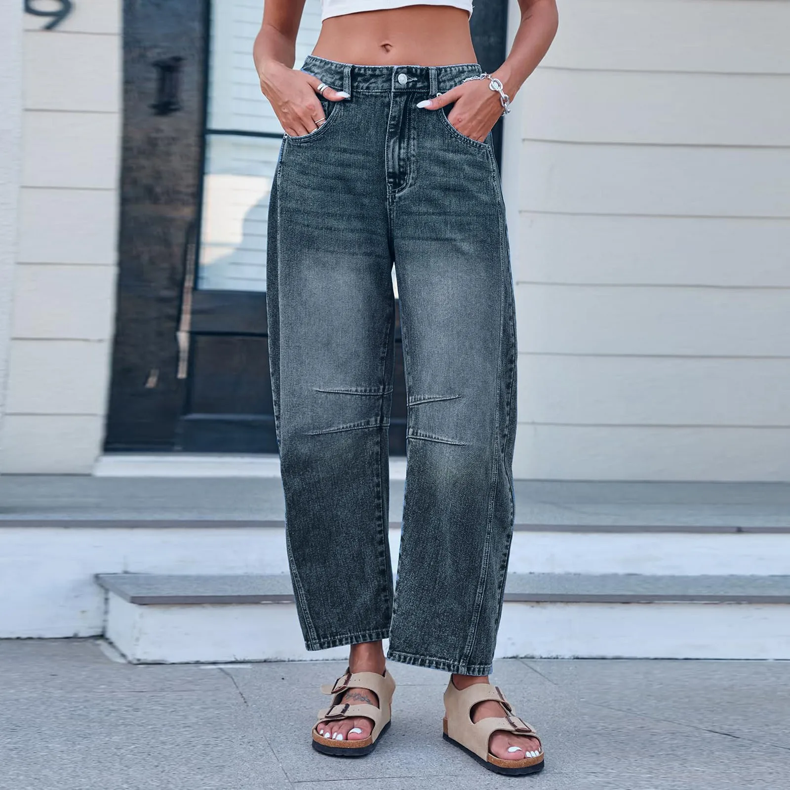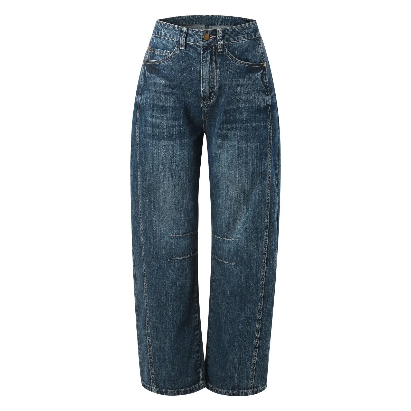 Women's Mid Rise Barrel Jeans For Women Wide Leg Mid Waist Cropped Denim Pants Baggy Boyfriend Jeans With Pockets New Wash
