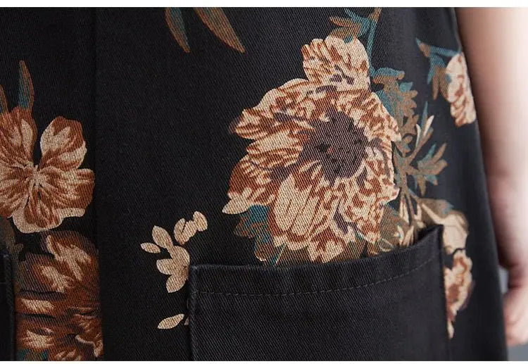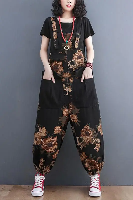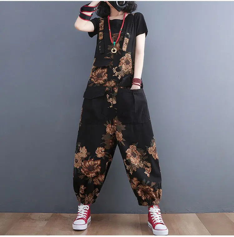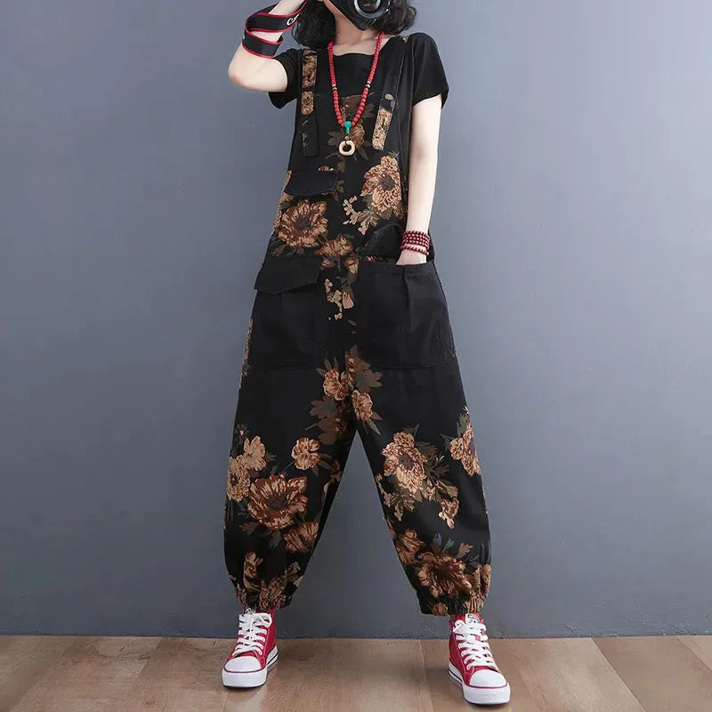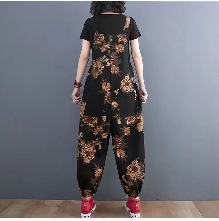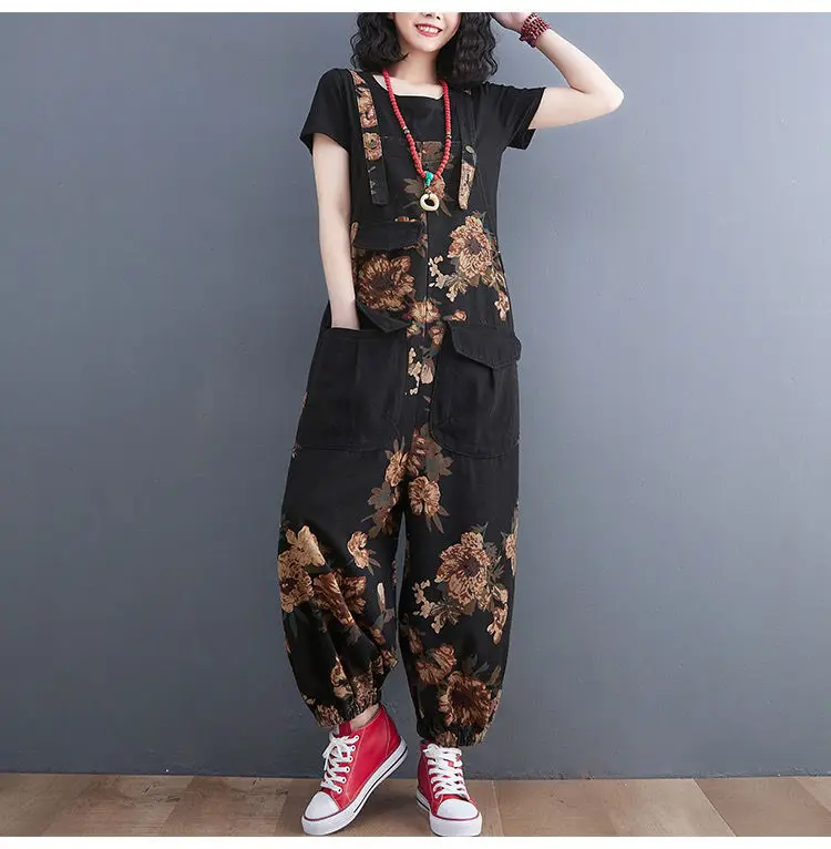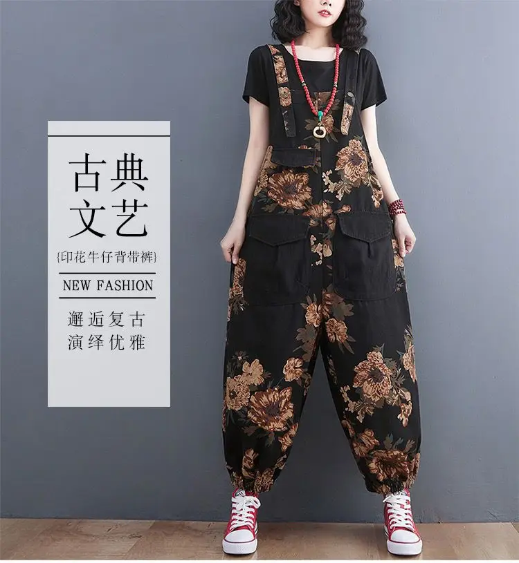 Women's Nine Split Jeans Overalls, Casual Female Print Jumpsuit, Loose Bloomers, Oversized Rompers, Suspenders, Fashion, Spring,