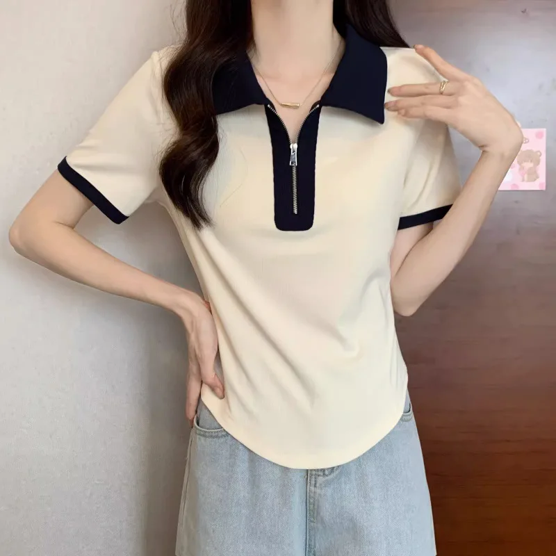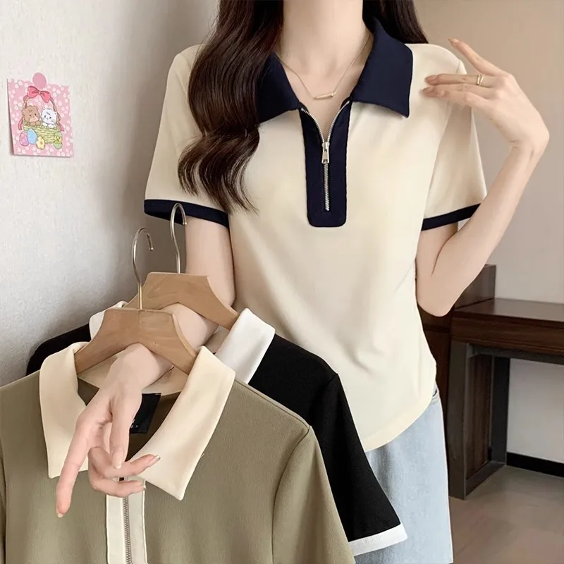 Women's Versatile Tops in Summer, Loose Shoulders, Slightly Fat Covering the Flesh and Making You Look Slim and Short Sleeves