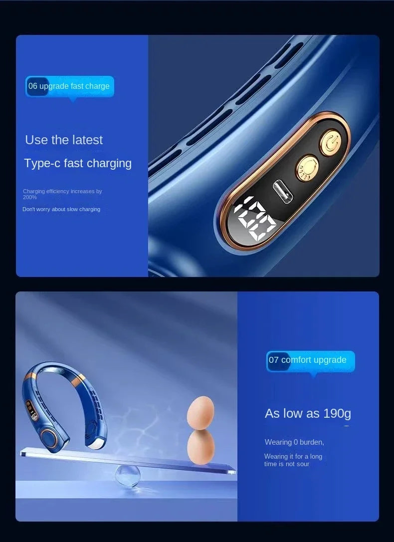 XIAOMI Charging Neck Fan 5 Speed Portable Digital Display 4000mAh Rechargeable Bladeless Electric fan Air Conditioner For Sport