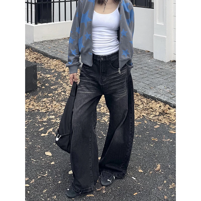YIBASHU Women Y2k Jeans Harajuku Aesthetic Japanese 2000s Style Baggy Denim Trousers Vintage Oversize Jean Pants Trashy Clothes