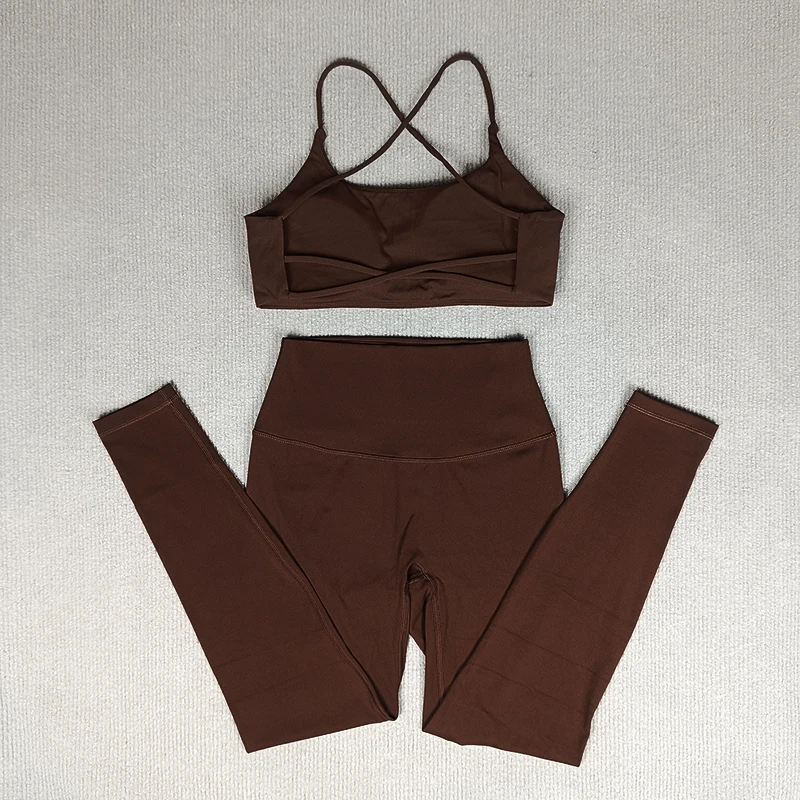 Yoga Clothes Set 2 Pcs Gym Tights Sports Set Women Sweat Bras Tops Compression Leggings Fitness Suit Running Workout Tracksuit